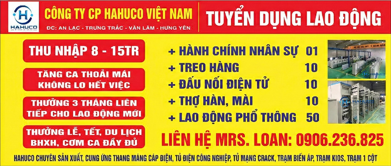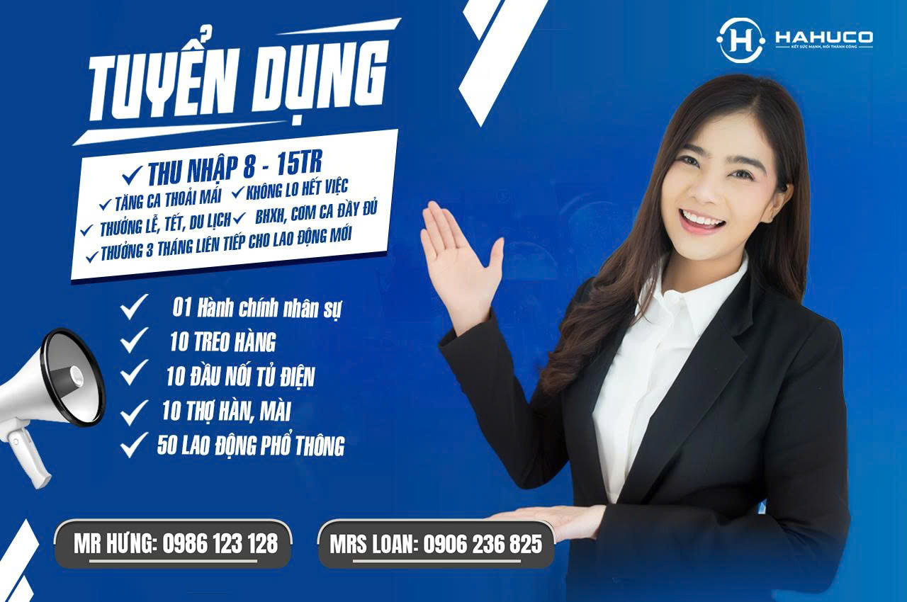 TUYỂN DỤNG LAO ĐỘNG TẠI HƯNG YÊN – THU NHẬP 8 – 15 TRIỆU/THÁNG